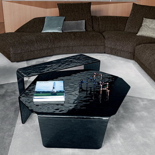 Black Hot Melt Glass Coffee Table With Forged Convex And Concave Texture, Suitable For Living Room