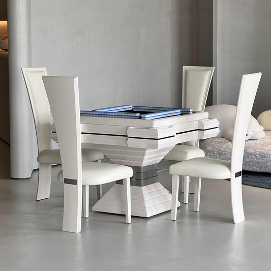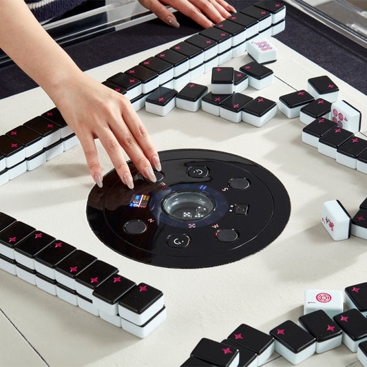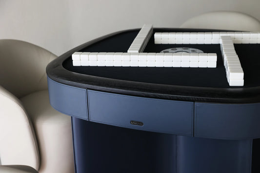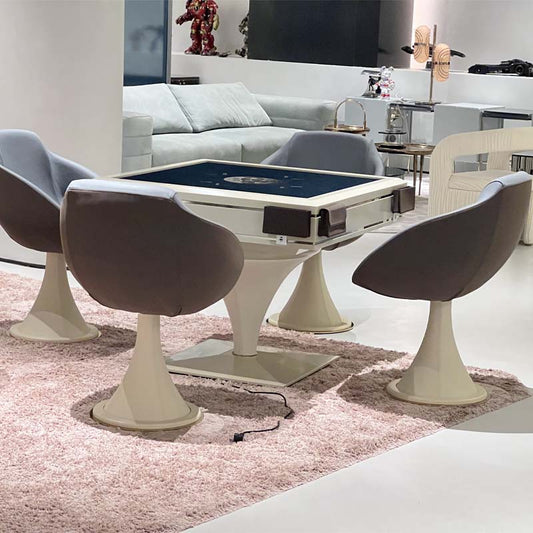 White Saddle Leather 4-Seater Automatic Mahjong Table