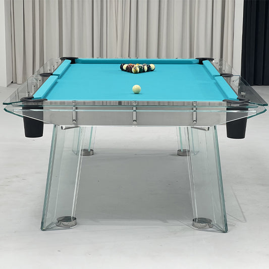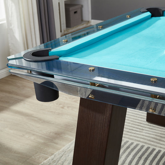 7FT/8FT/9FT Glass Stainless Steel Pool Table - Blue