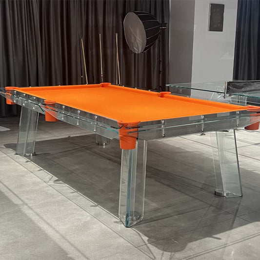 Orange glass pool table, available in multiple sizes