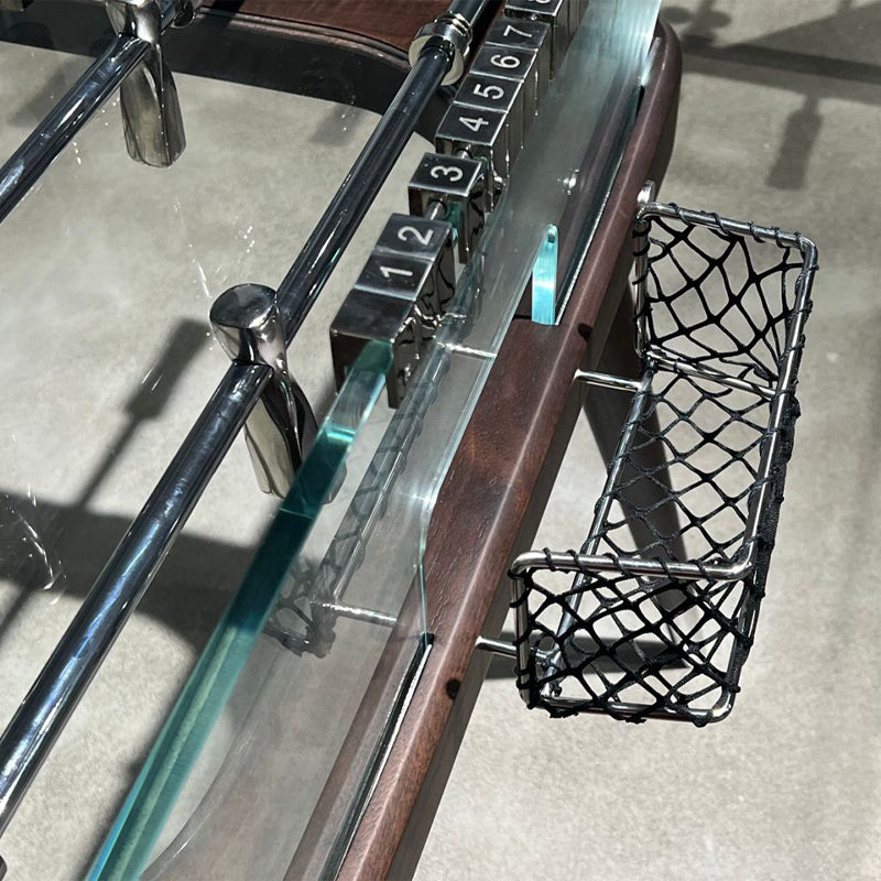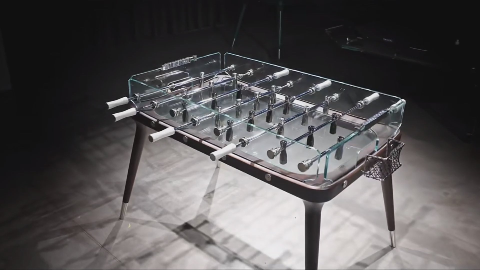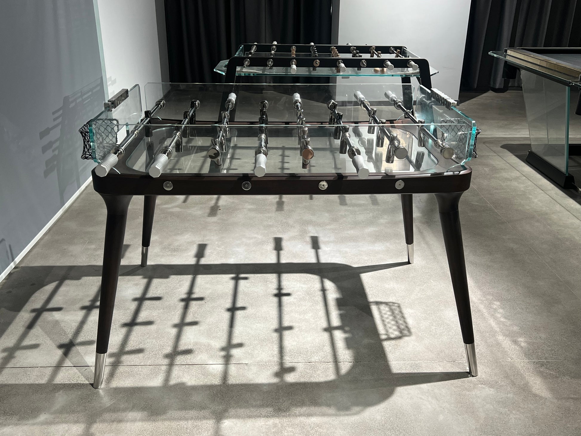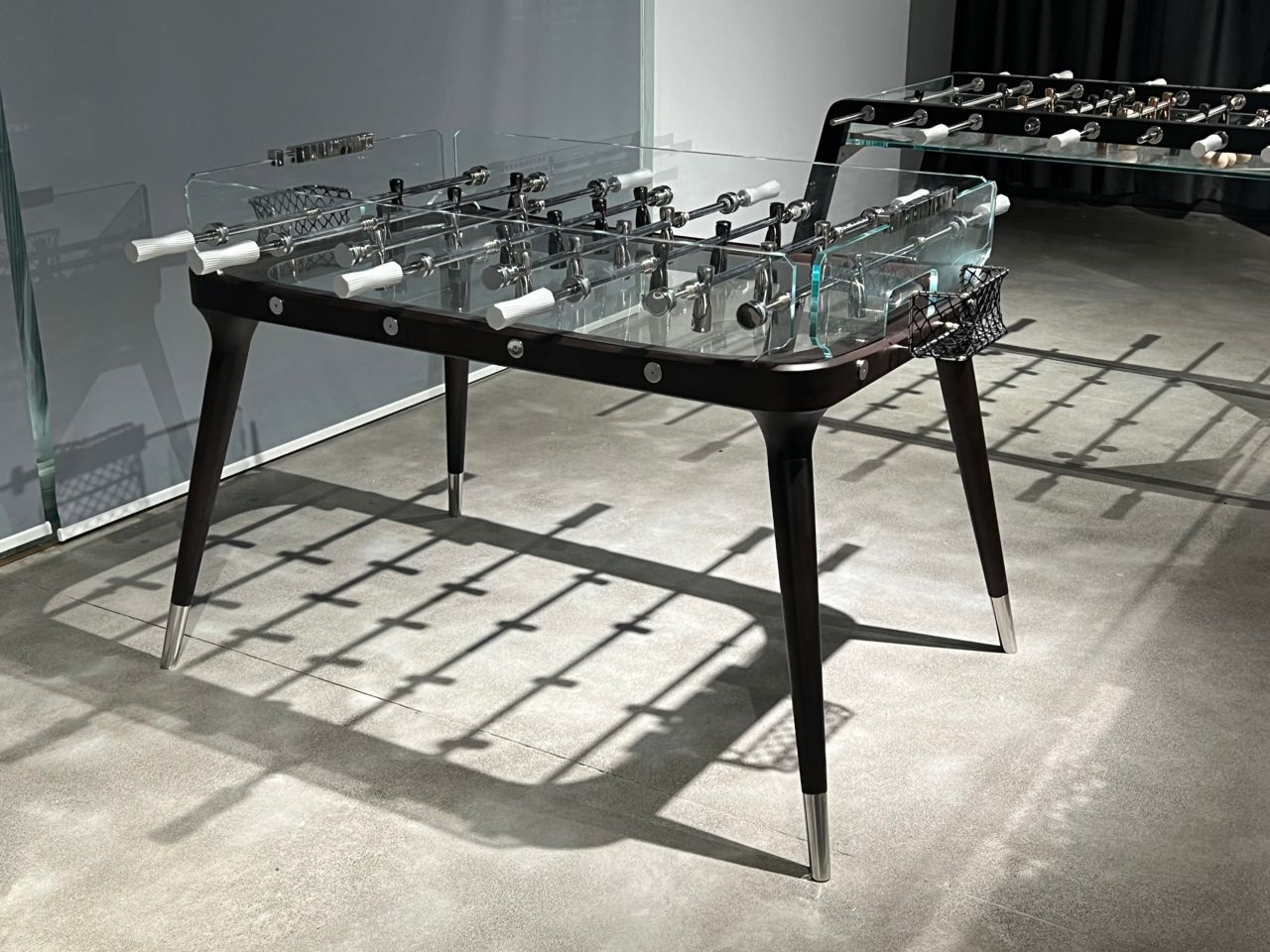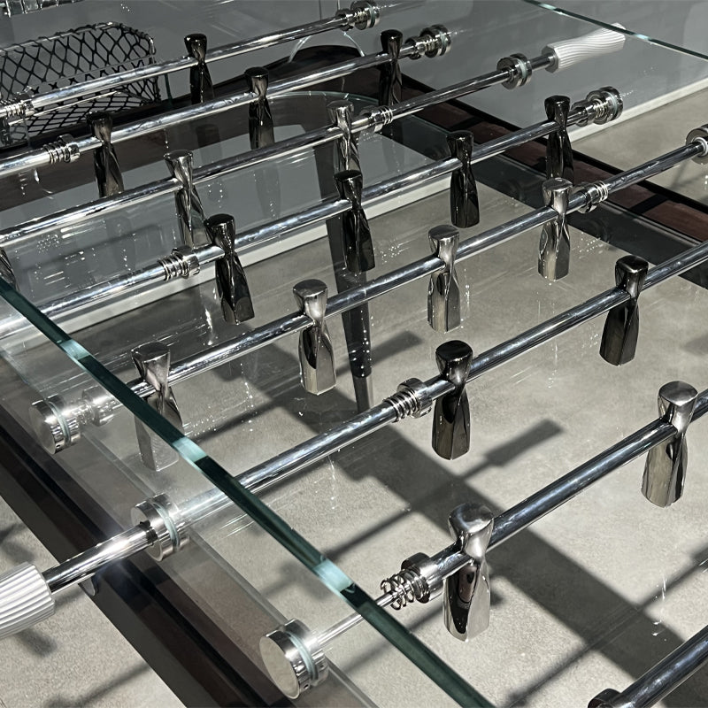 Table de baby-foot en verre et noyer pour les réceptions en intérieur